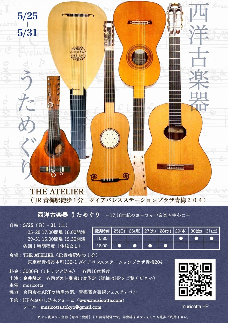 5月25日(日)はトリオ演奏、5月27日(火)はデュオ演奏です。